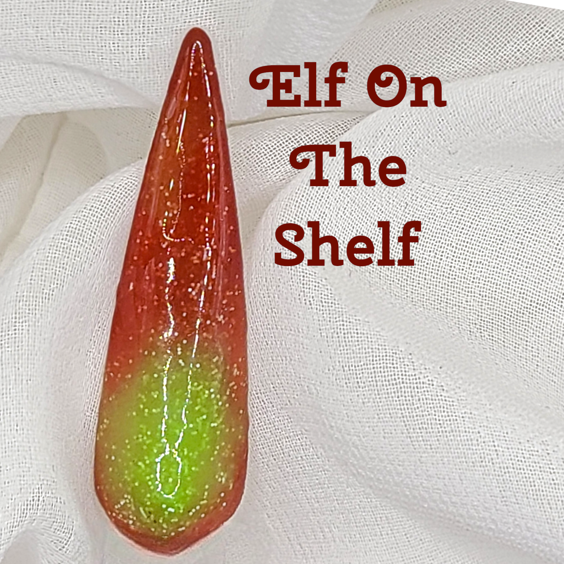 "The Elf On The Shelf is more than just a cute decoration - it's a magical color-changing experience! Watch as this thermal dip powder goes from red to bright green, adding a touch of festive sparkle to your nails. 'Tis the season for some fun and flair!